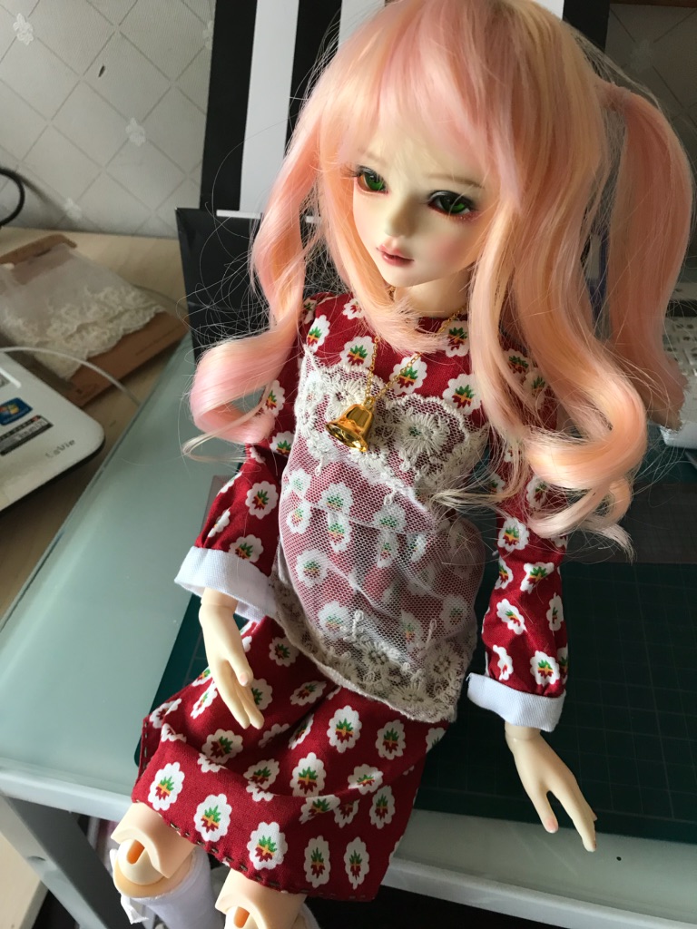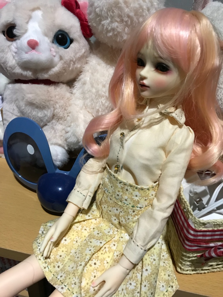 お洋服をつくってキャッキャするのが目的なのでウィッグとかアイはまだ手を出さない予定。十分かわいいというかカラーリング好きなので・・・黄色ぎみな薄ピンクで超かわいいんですよ。